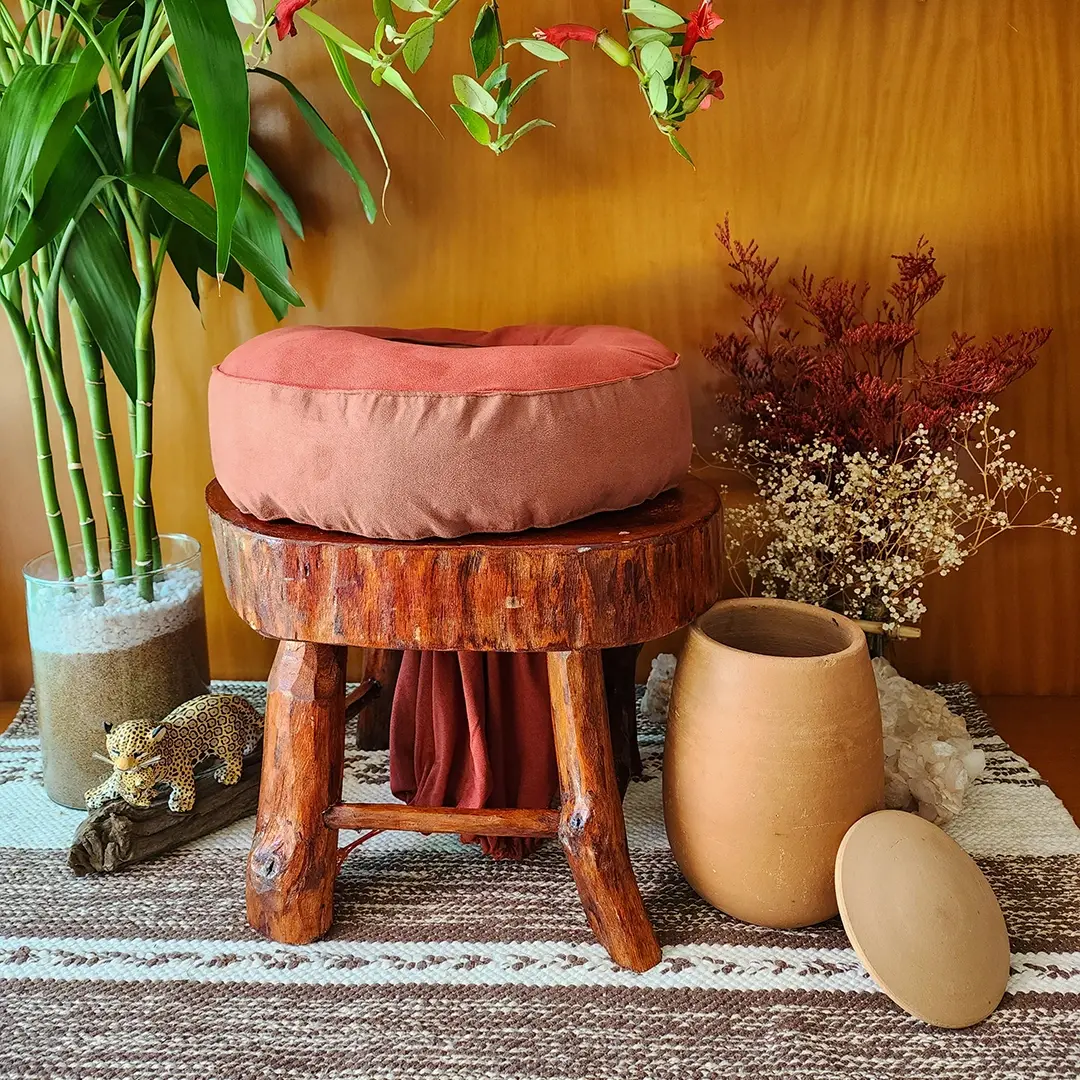 Kit Banco de Vaporização do Útero com Cumbuca de Barro e Almofada